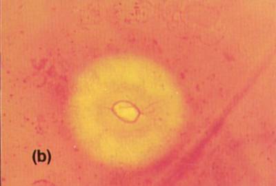 (a) — Overlapping 210Po halos in biotite, using phase contrast;
